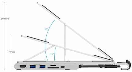 ZENDURE SuperStandは100W USB PowerDelivery出力ポートやUSB Type-Aポート、SDカードポート、HDMI出力ポートを搭載するUSBハブが付属するアルミ合金製のノートPCスタンドです。