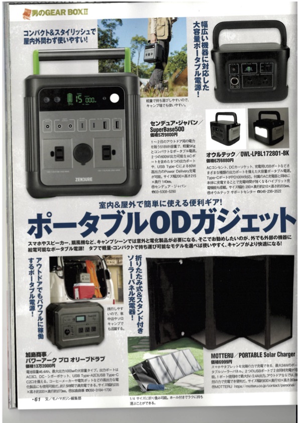 ZENDURE SuperBase500がモノ・マガジン2021年7月16日発売のモノ・マガジン情報号 大特集ギアボックスに掲載されました。