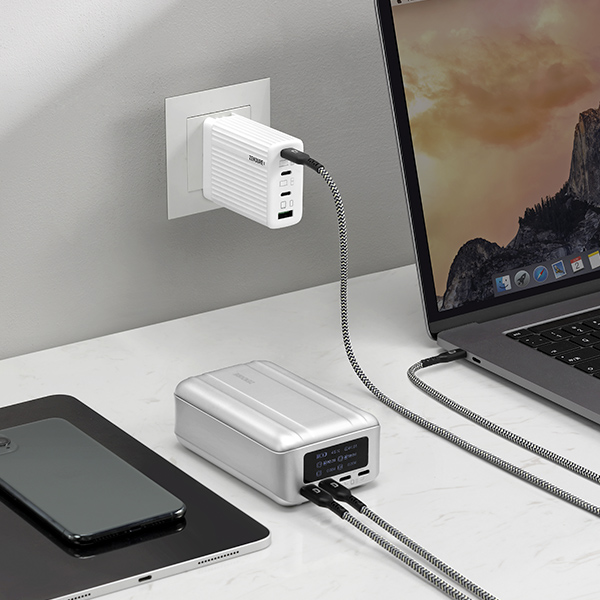 GaN技術を採用し、USB PowerDelivery 100Wの高出力、USB4ポート搭載でコンパクトな設計を実現したハイパワー多用途ACアダプタ