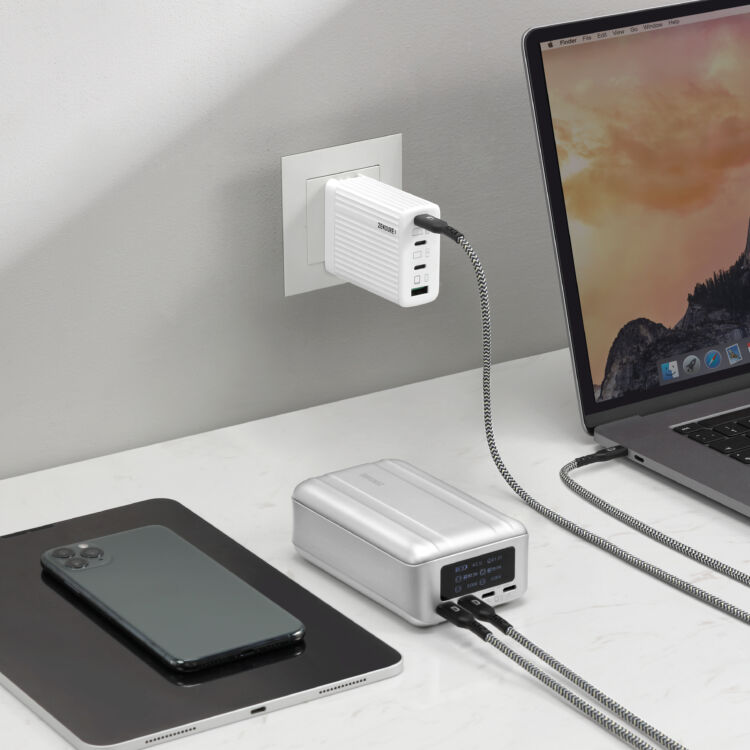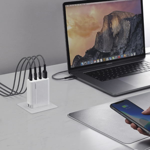 GaN技術により、高出力とコンパクト軽量な設計を実現。さらに電源コンセントを邪魔しない形状と安全に鞄に入れておける折り畳みプラグで、ユーザーの利便性を追求しています。