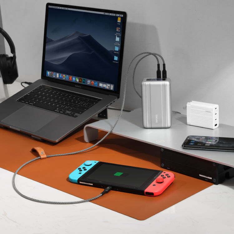 コンパクトなボディに100Wの高出力でノートPCも充電。持ち歩きにも家やオフィス使いにも便利です。