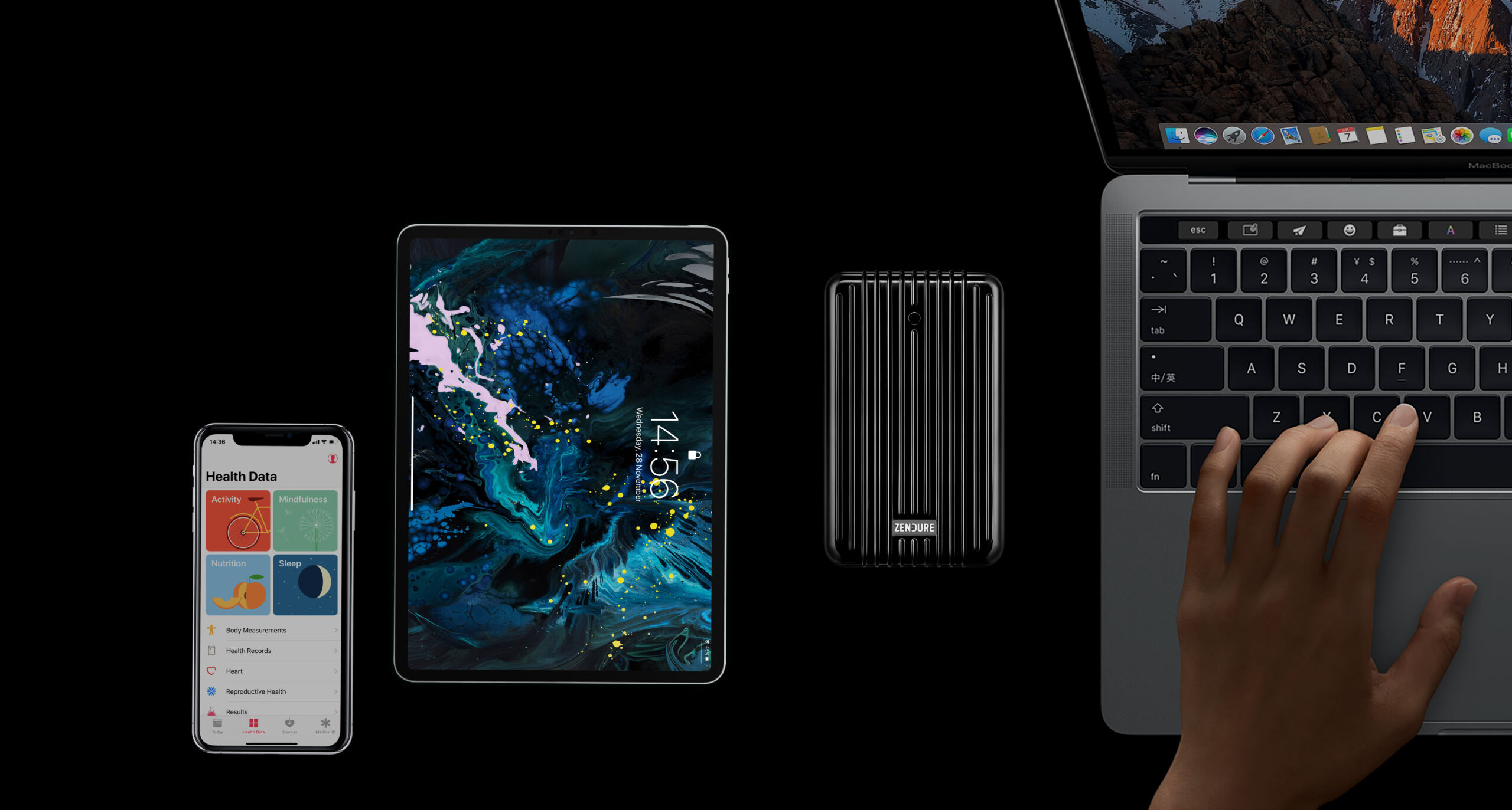 100W PD充電を使用すると96W必要な MacBook Pro (16インチ2019モデル)をフルスピードで充電でき、1.5時間で0%から100%まで充電します。