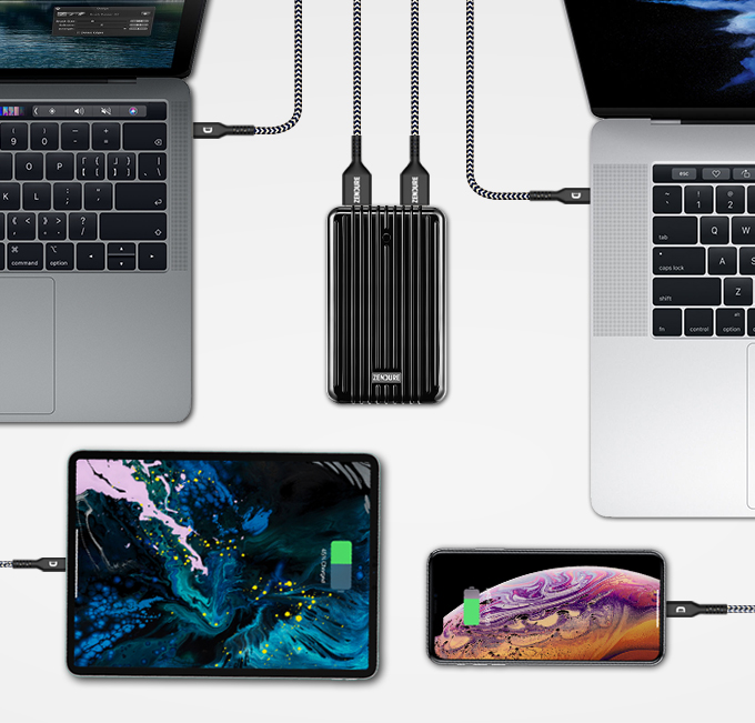 100Wの充電器と付属の5A / 100W USB-Cケーブルで、この大容量のモバイルバッテリー SuperTank をたったの2時間でフル充電することが可能です。